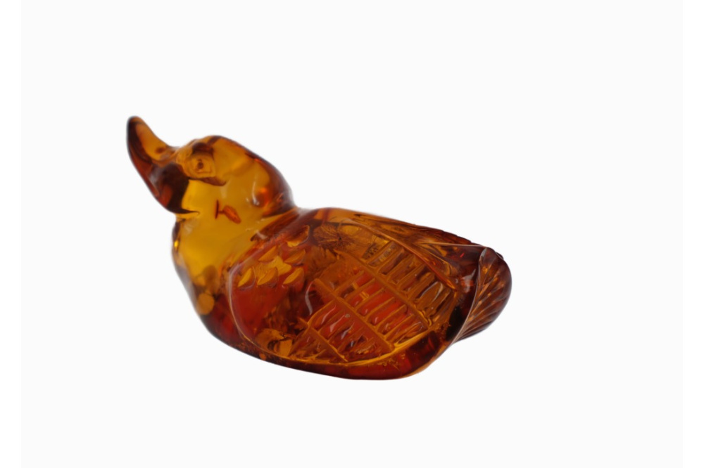 RZEŻBA Z BURSZTYNU KACZKA KACZUSZKA