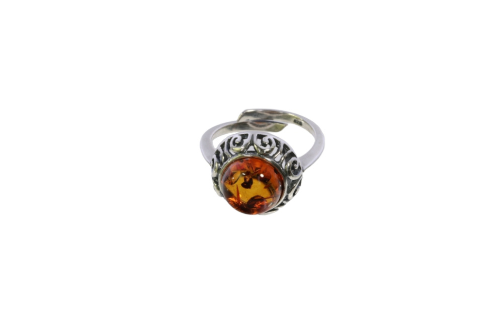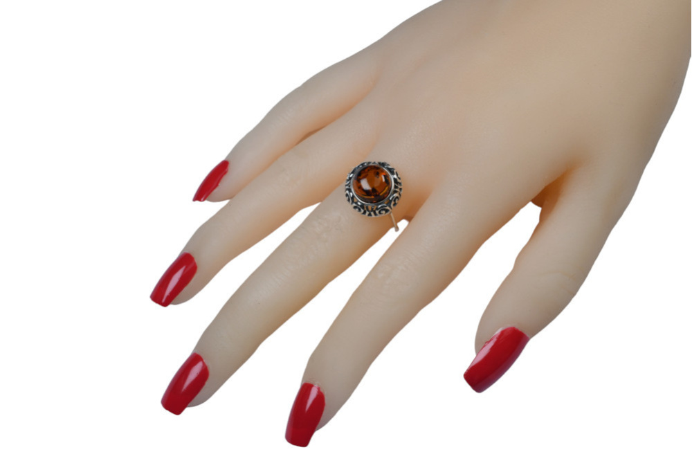 Pierścionek srebrno bursztynowy. Taki palec zrobi wrażenie