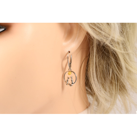 Kolczyki srebrno bursztynowe kotki. Będą mruczały ci rozkosznie do ucha.