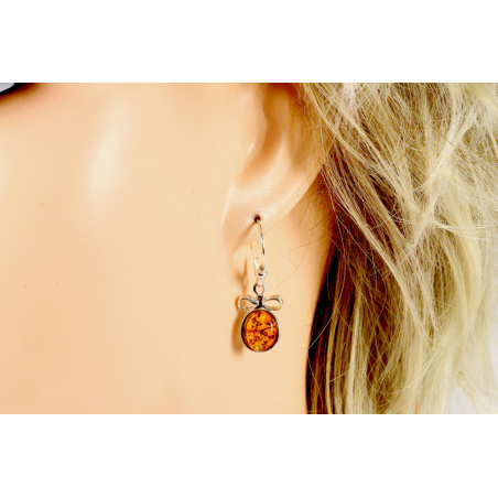 Srebrno bursztynowe kolczyki