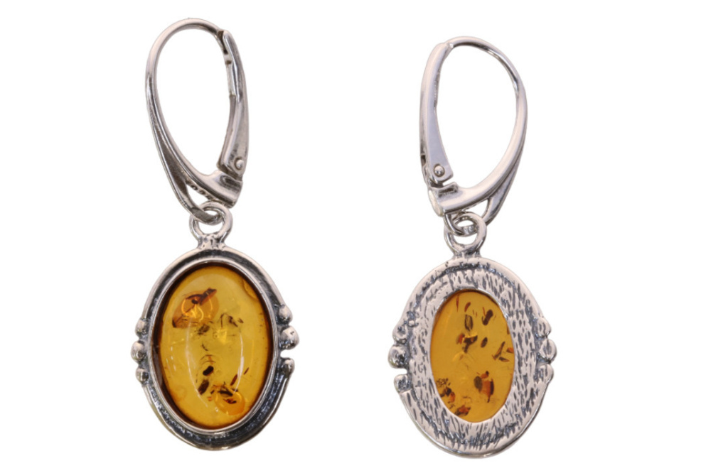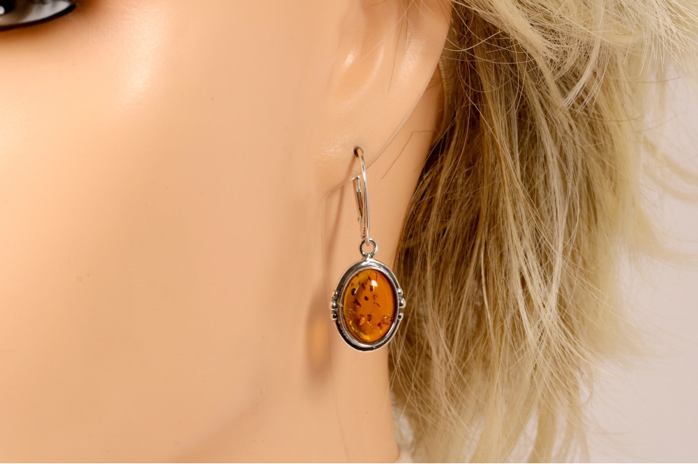 Srebrno bursztynowe kolczyki