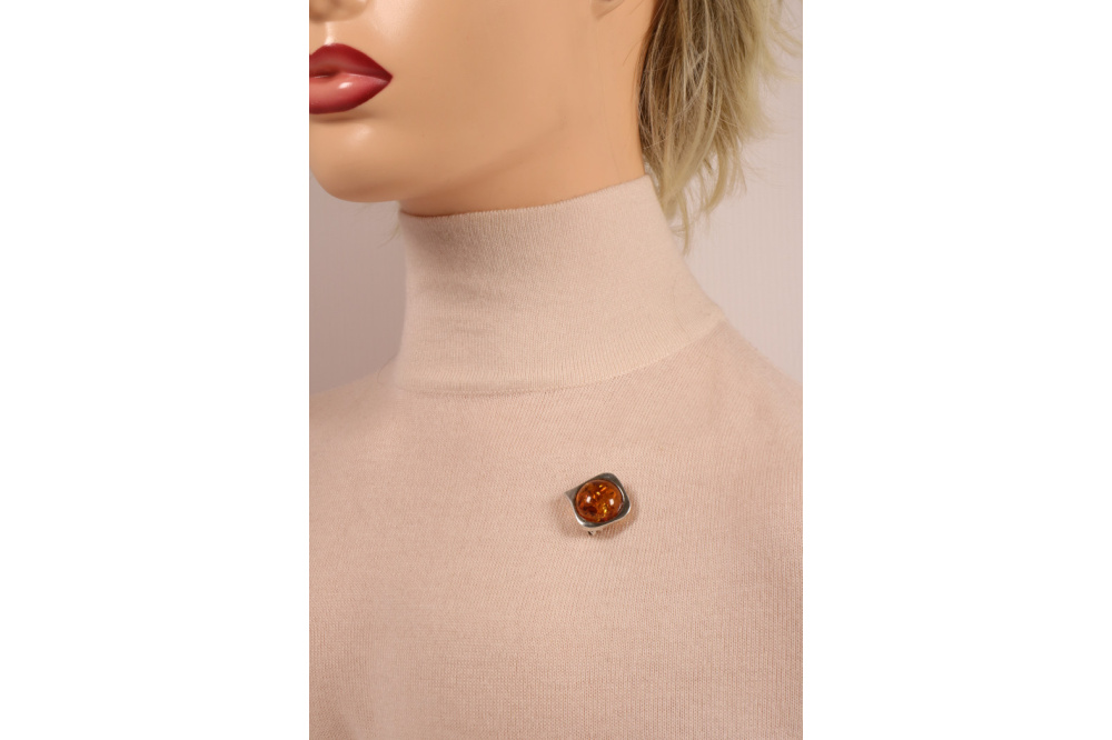 Broszka bursztynowa ze srebrem .Dyskretna ozdoba na każdą chwilę.