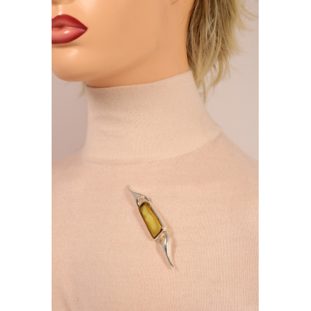 Broszka srebrno bursztynowa z cudowną mgiełką. Smukła i stylowa broszka podkreśli twój styl.
