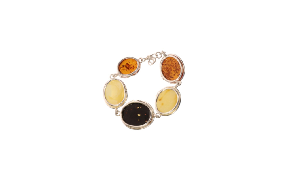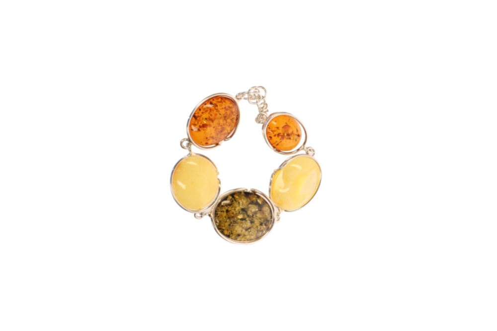 Bransoleta srebrno bursztynowa multicolor. Przepiękna i wyjątkowa ozdoba twojej dłoni.