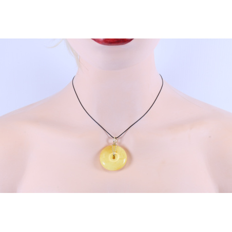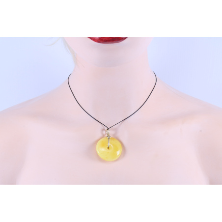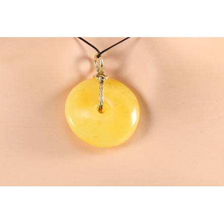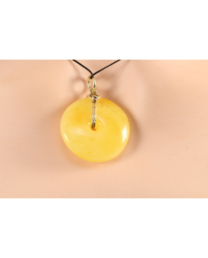 Wisiorek donat bursztynowy w kolorze miodowym, mlecznym. Elegancki i prosty zarazem bursztynowy wisiorek z pozłacaną srebrną zawieszką
