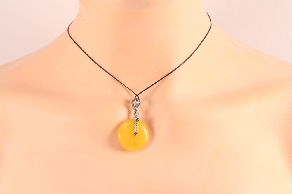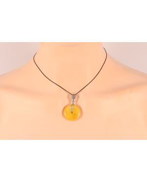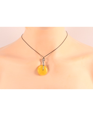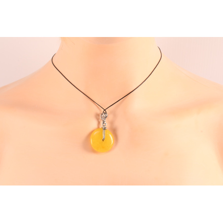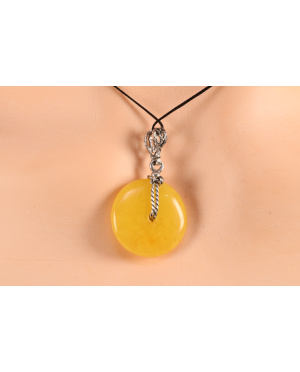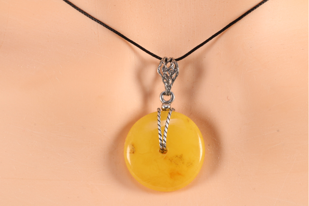 Donat bursztynowy w kolorze antycznym, mlecznym z srebrną zawieszką. Elegancki donat w kolorze antycznego bursztynu pokryty szlachetną patyną.