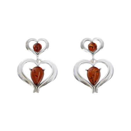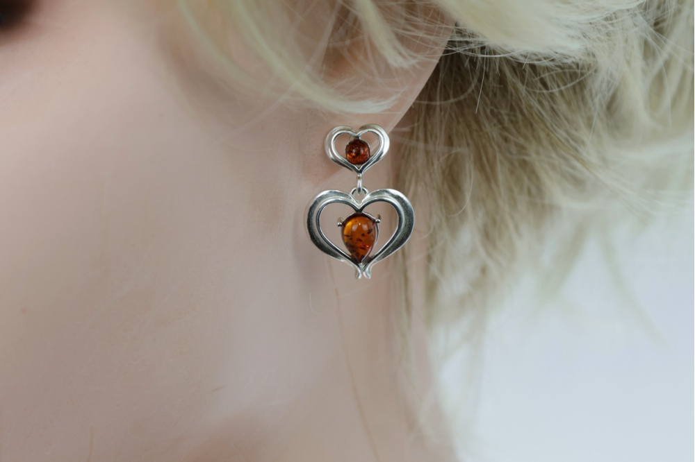 Kolczyki srebrno bursztynowe serca-serduszka. Będziesz z sercem na wierzchu.