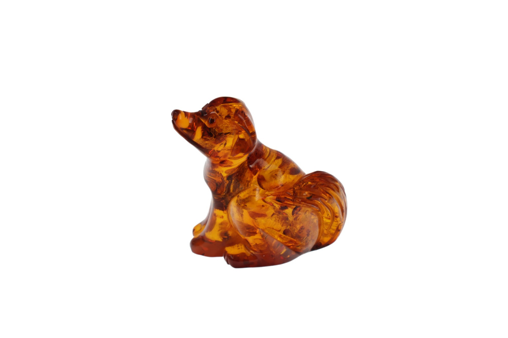 Rzeźba bursztynowa pies. Najlepszy przyjaciel człowieka pies z bursztynu. Ręcznie wykonana rzeźba psa pojedynczy unikatowy egzemplarz