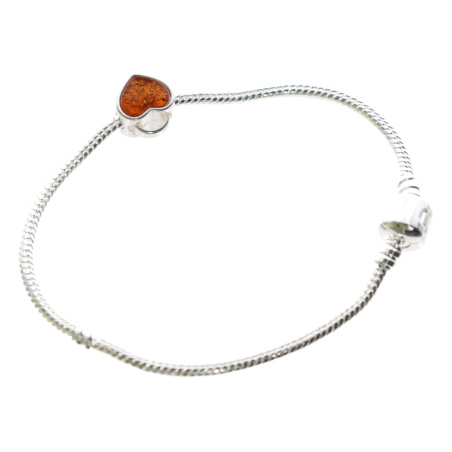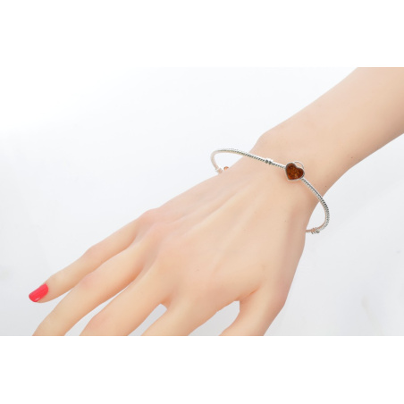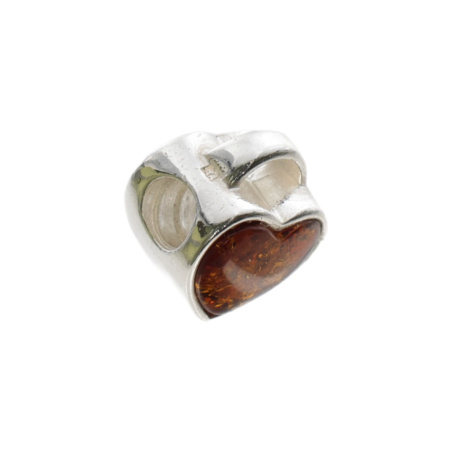 Charms srebrno bursztynowy serce. Miła i rozkoszna zawieszka w kształcie serduszka. Śmiało można powiedzieć serce na dłoni. Element bursztynowy jest z obu stron wisiorka.