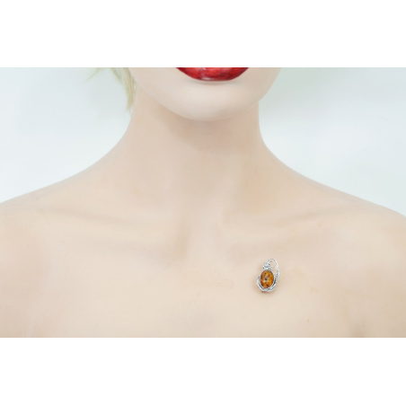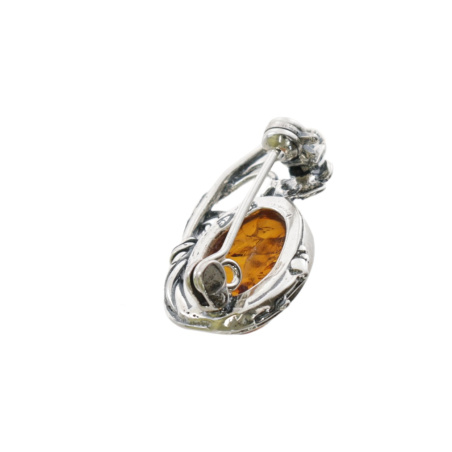 Broszka srebrna z bursztynem. Tak trochę zakręcona ale pozytywnie. Dyskretnie i milutko. Razem na długo