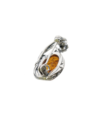 Wisiorek srebrno bursztynowy. Ładnie wygląda na szyi. Będzie wam razem dobrze.