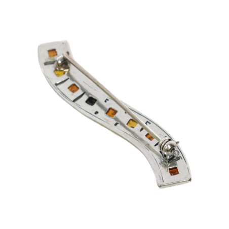 Broszka srebrno bursztynowa. Miła fala z kwadracików. Szuka kogoś do kompletu.