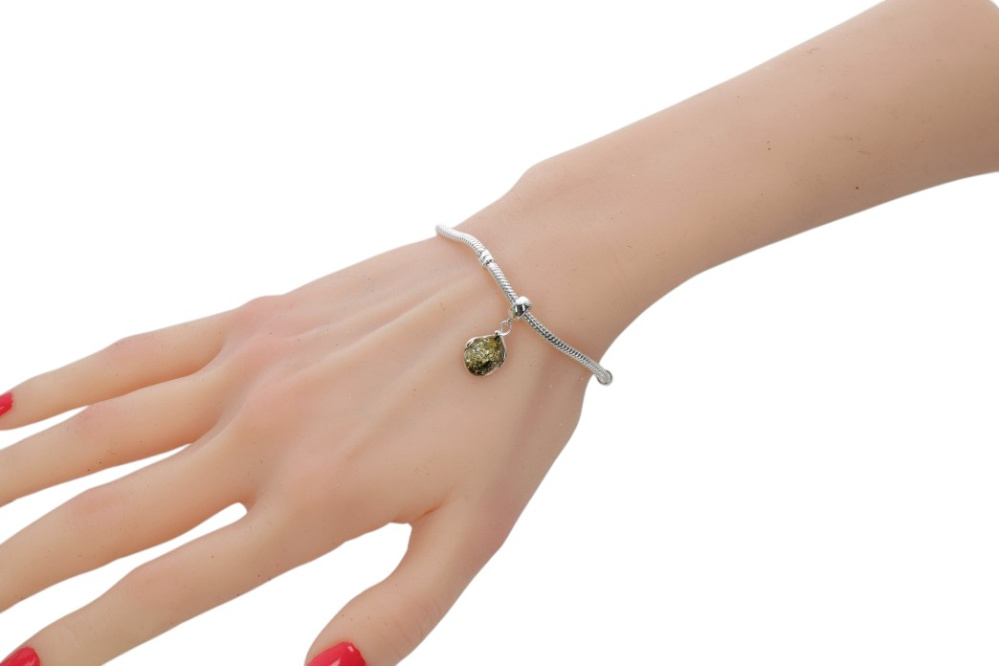 Charms srebrno bursztynowy zielony. Czuję ,że pasujecie do siebie. Na zawsze razem.