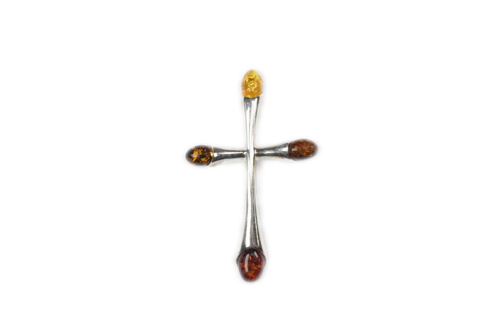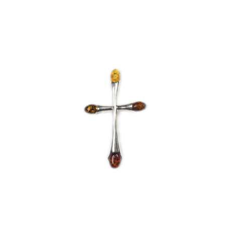 Krzyżyk srebrno bursztynowy